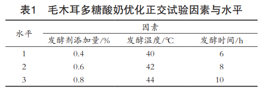 毛木耳多糖屬于酸性多糖,具有提高機(jī)體免疫 力、抗癌抑癌、抗氧化衰老、降低血糖、調(diào)節(jié)心臟功 能等功效,因此毛木耳多糖的綜合利用對(duì)毛木耳多糖 生物活性研究和產(chǎn)品開(kāi)發(fā)具有重要意義。酸奶是以鮮牛奶為主要原料,利用嗜熱鏈球菌和 保加利亞乳桿菌等益生微生物,以益生菌發(fā)酵的方式 得到發(fā)酵型乳制品。發(fā)酵酸奶易于消化吸收、提高食 欲、促進(jìn)腸道蠕動(dòng)、有利于治療便秘。營(yíng)養(yǎng)物質(zhì)豐 富,還可以增加人體免疫力,間接起到美白養(yǎng)護(hù)的效 果,因此發(fā)酵型酸奶受到大量消費(fèi)者的喜愛(ài)。