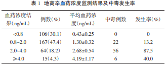 2.1 地高辛血藥濃度監(jiān)測結(jié)果及中毒發(fā)生率