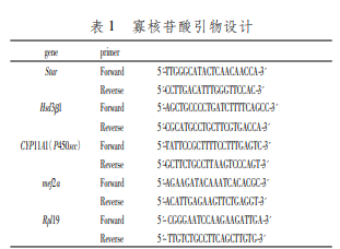 StAR/P450scc /3βHSD、 MEF2A mRNA 的表達 應用引物設計軟件設計上述基因引物( 如表 1) ,BLAST 驗證其有效性,送至生物公司合成,將 提取的細胞 RNA 逆轉錄成 cDNA,qRT-PCR 檢測 各組基因表達量。