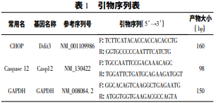Lactacystin、阿撲嗎啡,購自美國 Sigma 公司; TriZol( 批號(hào) 14105) ,購自 Invirogen 公司; 逆轉(zhuǎn)錄試劑 盒( 批號(hào) 0051509) ,購自 New England Biolabs; 擴(kuò)增試劑盒 ( 批號(hào) 0006231745) ,購自 Agilent; 蛋白質(zhì)裂解液、一抗稀釋 液、ECL 化學(xué)發(fā)光試劑,購自碧云天生物技術(shù)研究所; 蛋白 測定試劑盒,購自鼎國生物技術(shù)有限公司; 兔抗人 β - Actin 多克隆抗體,購自 Santa Cruz; 羊抗兔 HRP - IgG,購自 Santa Cruz; anti - CHOP、anti - Caspase12,購自 cell signal 公司。